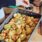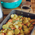 Perfect for all sorts of roasts or traybakes, these anodised aluminium trays will never flake, rust or buckle. This model comes with large, sturdy handles for easy carrying.
