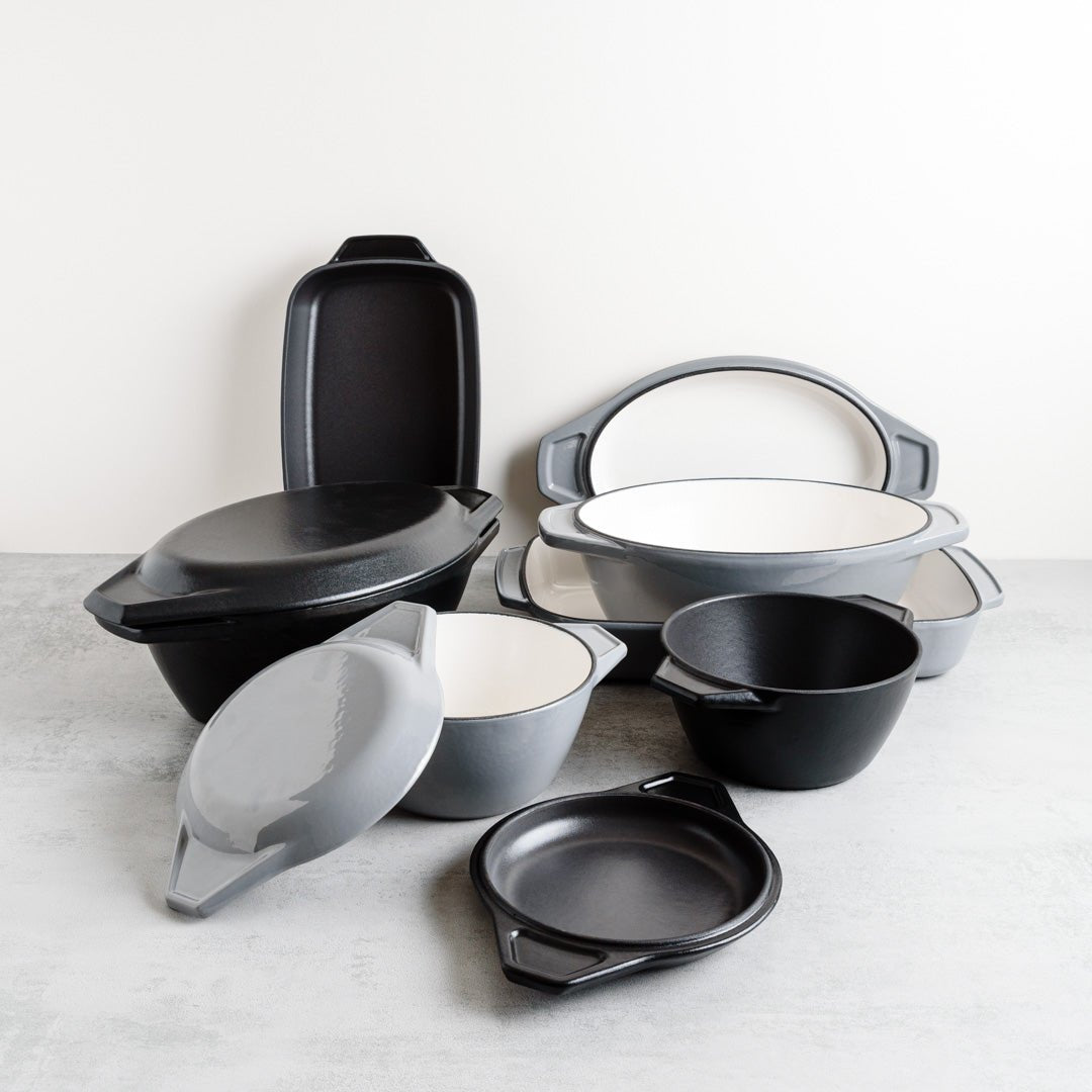 Grey & White Cast Iron Enamel Baking Dish by Samuel Groves