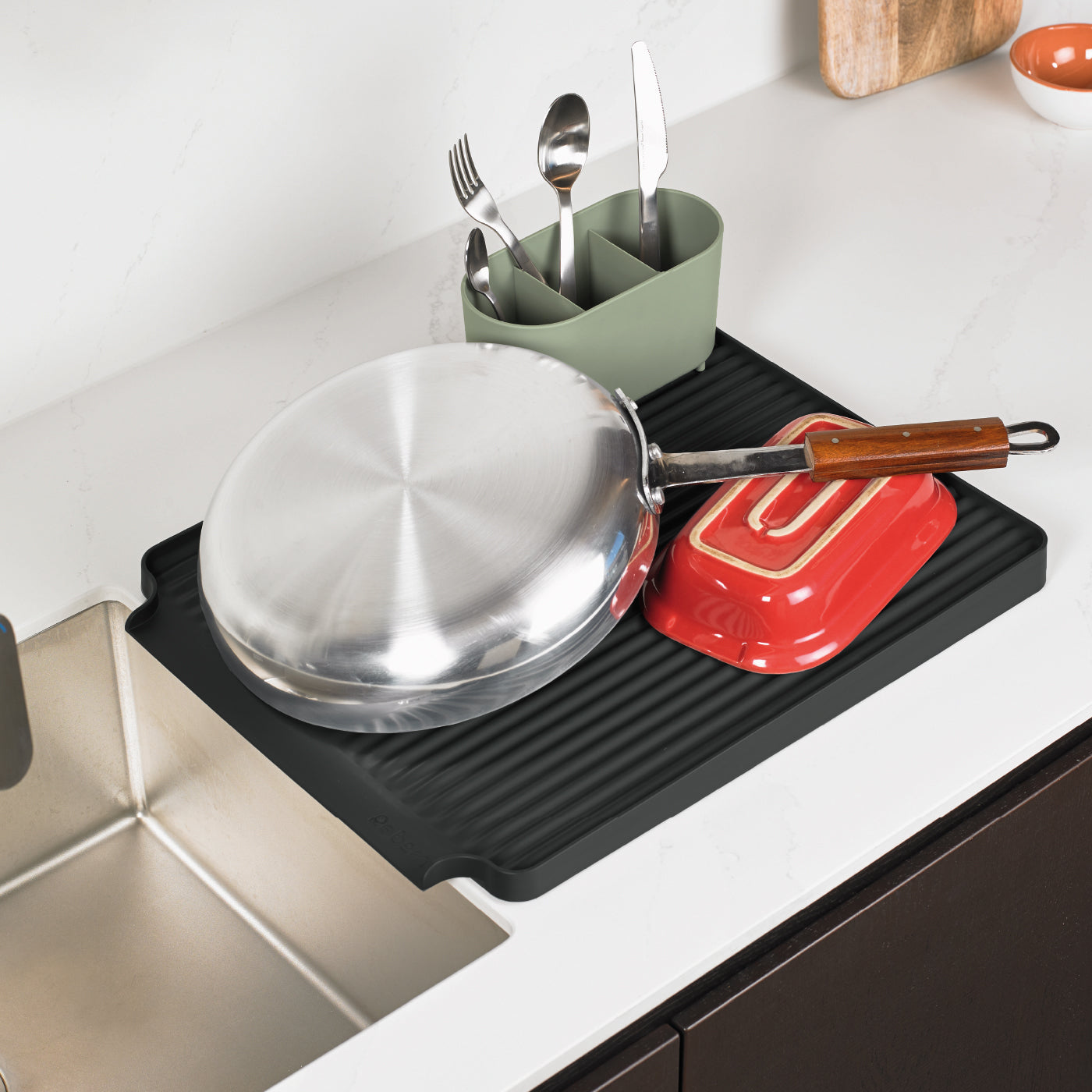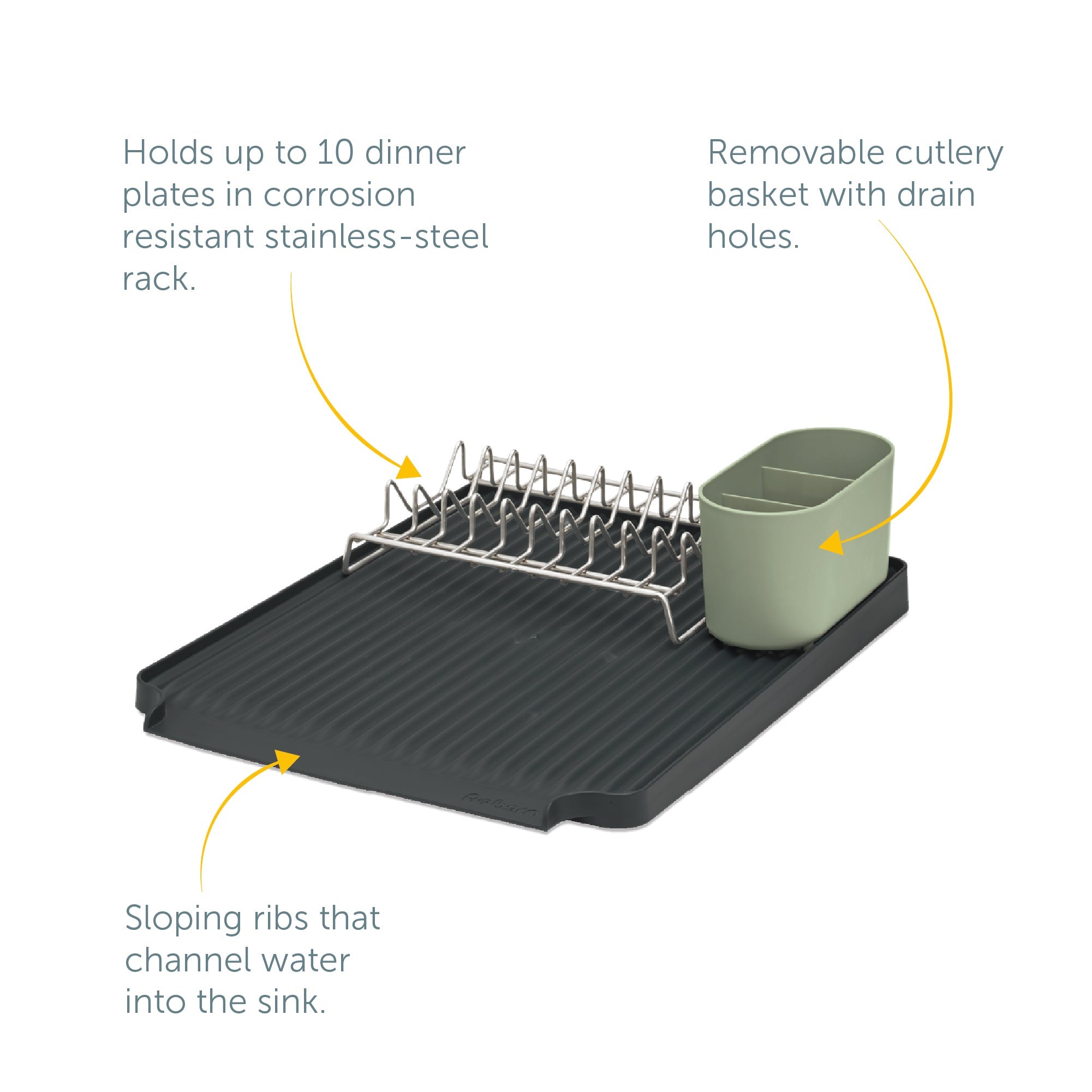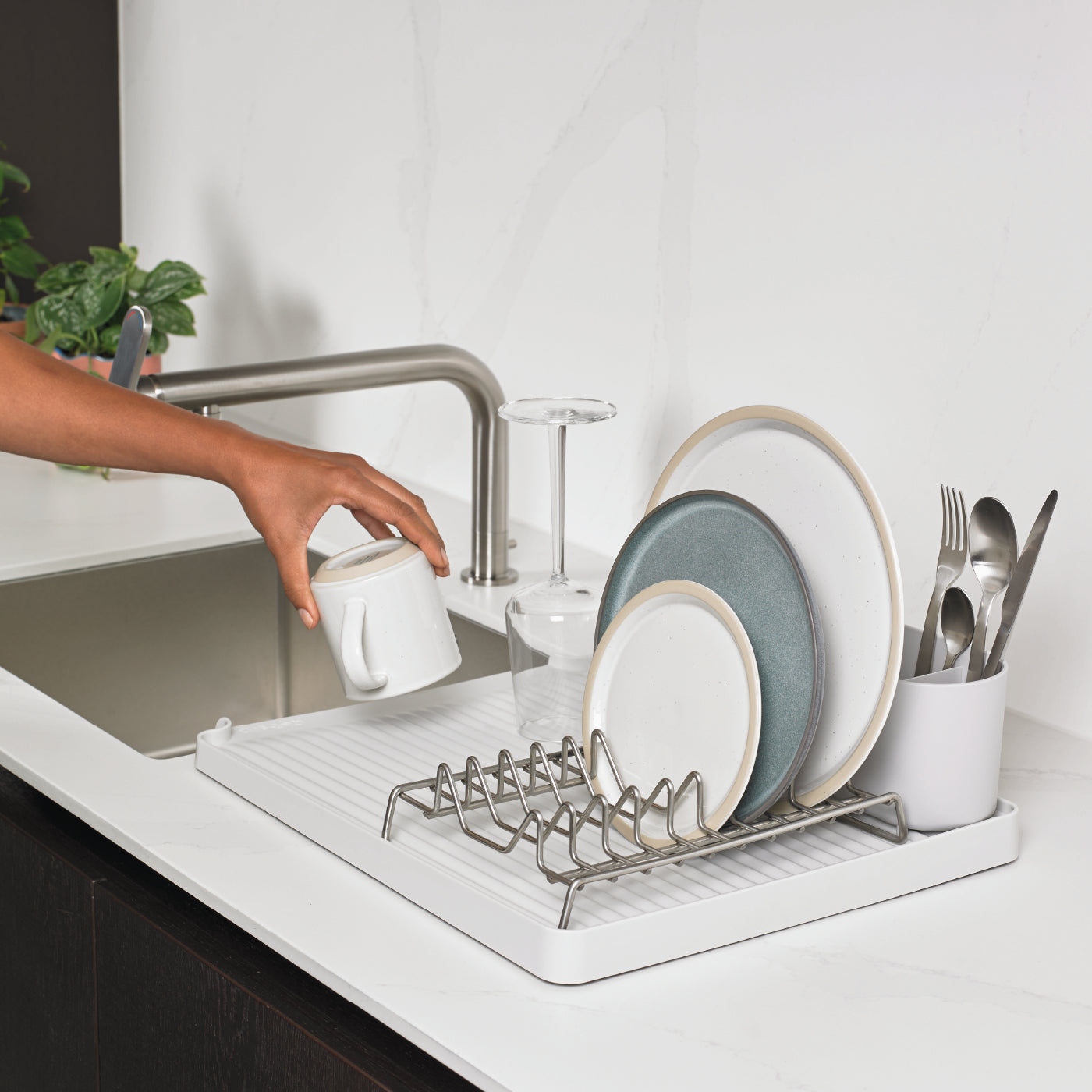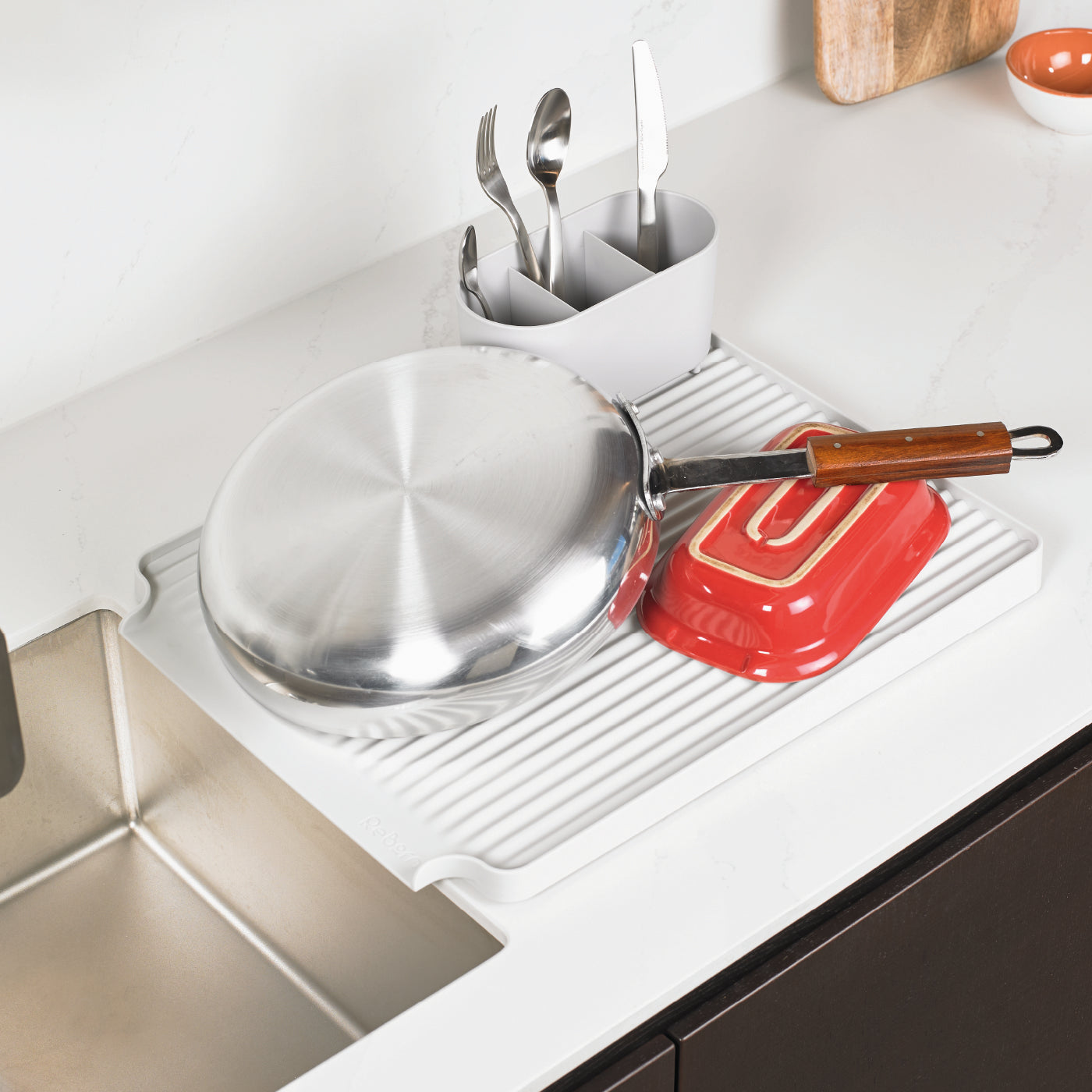 This draining rack isn’t just good-looking; it’s built from durable stainless steel and 100% recycled plastic, meaning it’s tough enough to handle the busiest kitchens. Many others rely on materials that rust or break down, but ReBorn's focus on sustainable sourcing means this rack is here for the long haul.