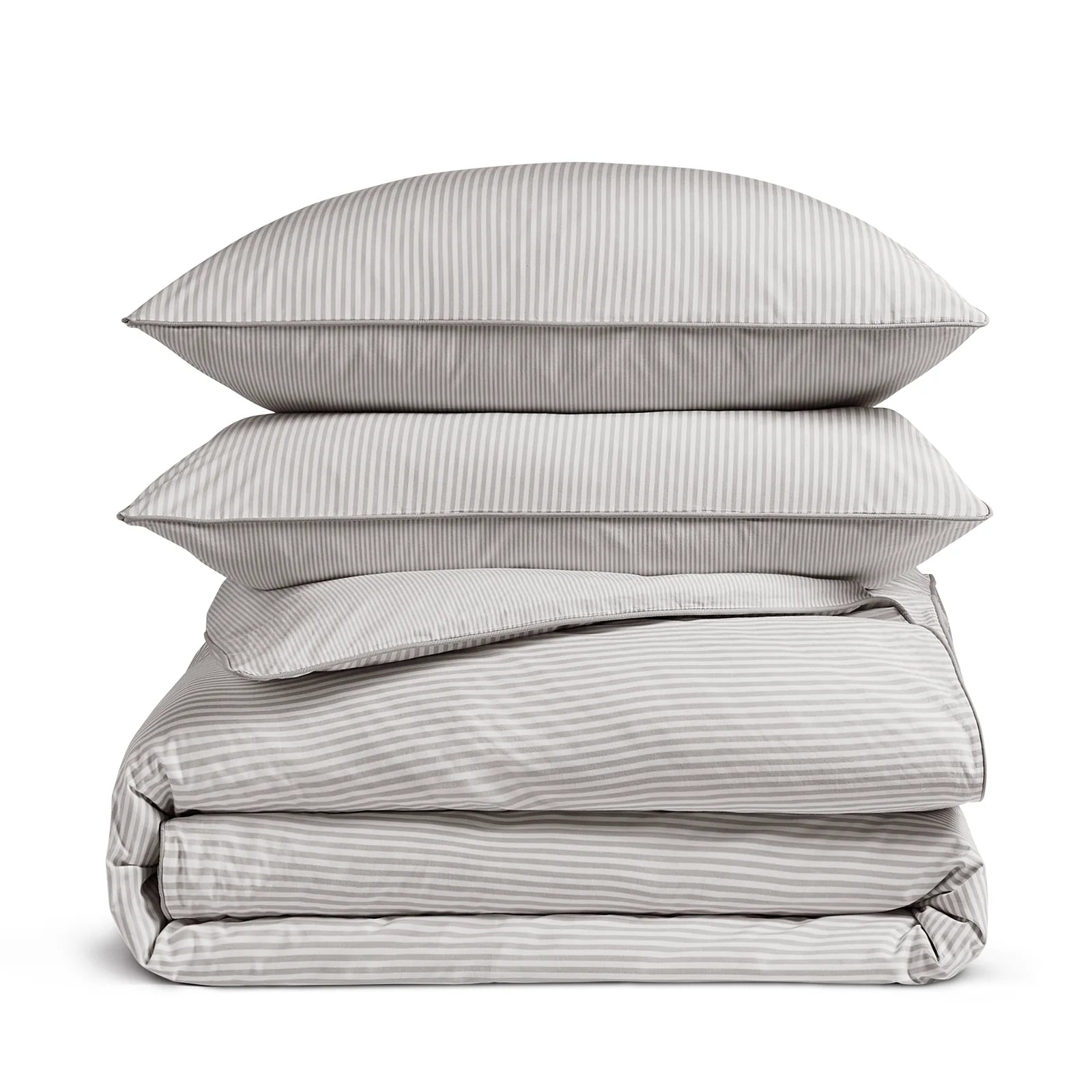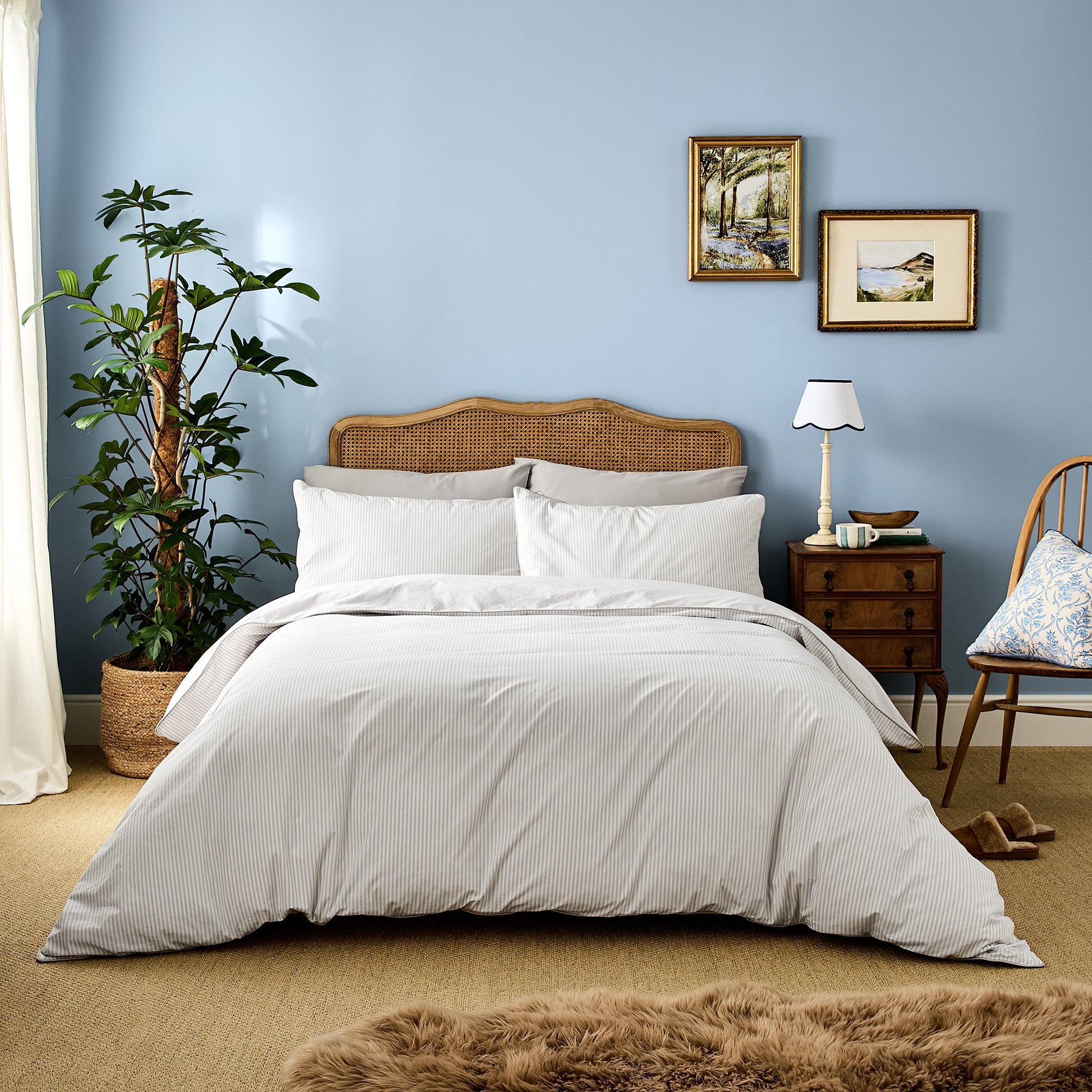Bring a relaxed Scandi feel to your bedroom, with this crisp striped bedding set made from organic Fairtrade cotton. Featuring piped edges and a reversible design.