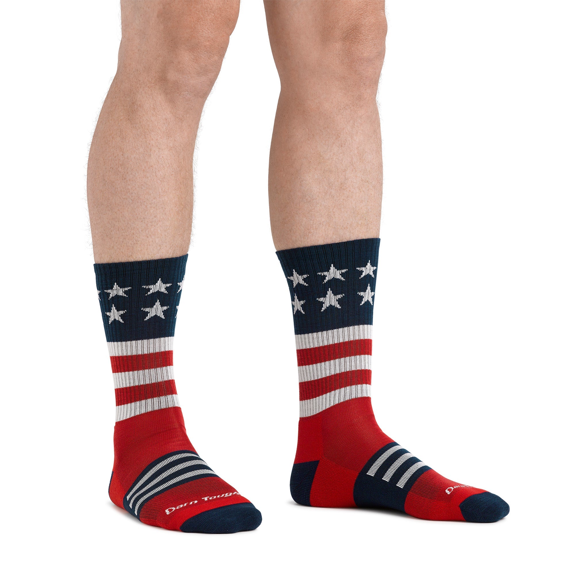 Mens Captain Stripe US Flag Crew Lightweight Hiking Merino Wool Socks by Darn Tough