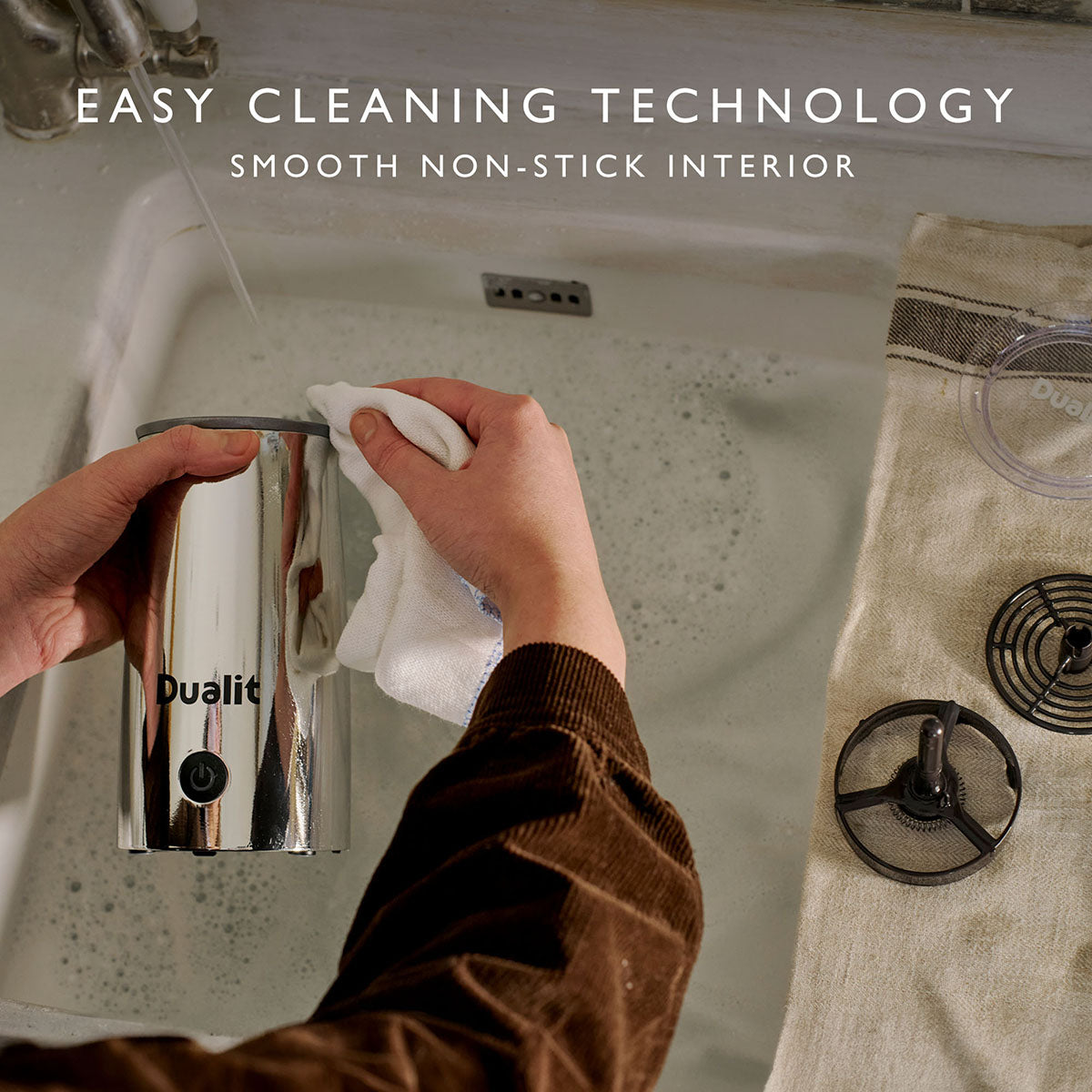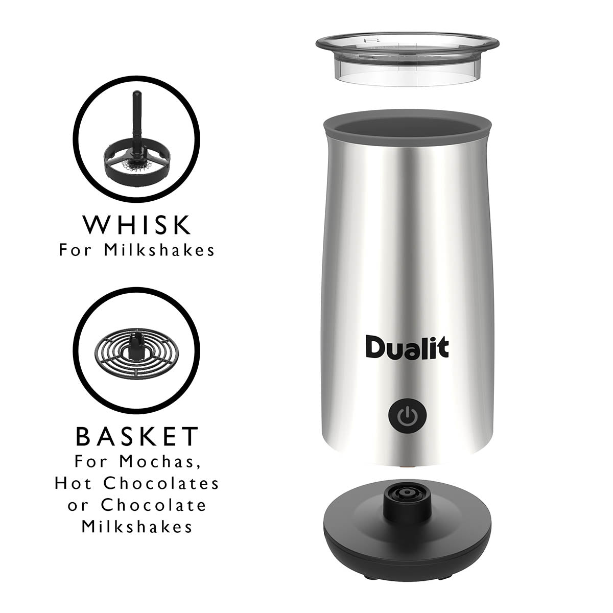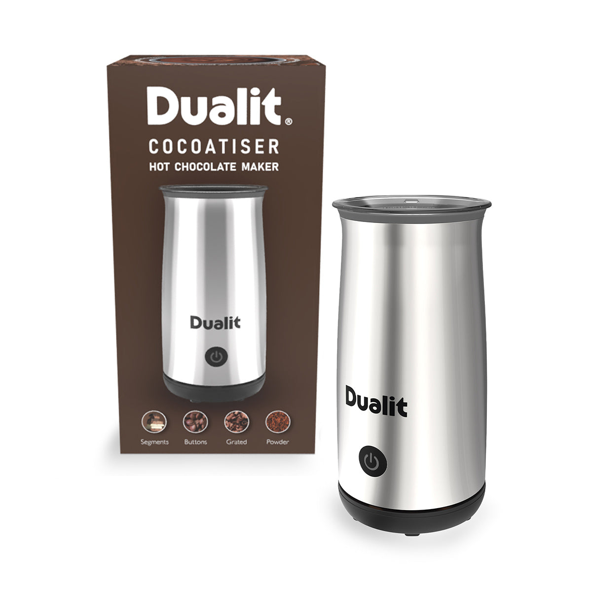 Selected for its exceptional quality, the Dualit Cocoatizer in Chrome delivers perfectly frothed hot chocolate at the touch of a button. Its premium construction ensures long-lasting performance and effortless beverage preparation.