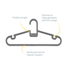 Made entirely from recycled plastics, these hangers aren’t going to buckle at the first sign of a heavy coat. Where flimsy ones might give up, ReBorn hangers have reinforced bars for that extra oomph. So, they’ll stick with you season after season, no sweat.