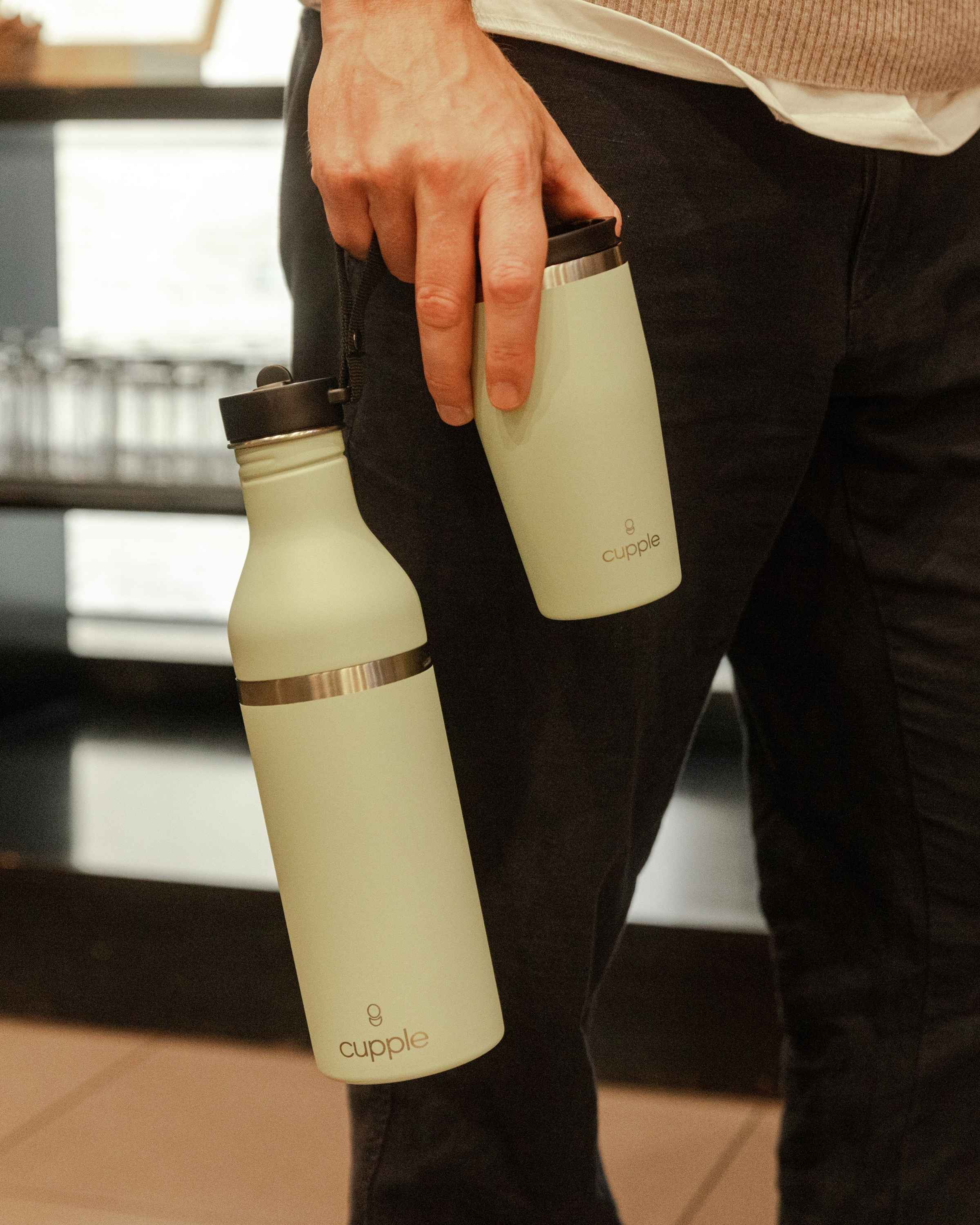 Cupple: a combined reusable water bottle and insulated coffee cup with lid that twist together into one. It’s an ingenious concept, one that allows you to stay hydrated on the go and get a spontaneous coffee - all without contributing to single-use plastic waste. One of the biggest barriers to using reusable coffee cups is remembering to take one with you. But with Cupple, your cup is just a twist away. In beautifully simple, super-durable designs, these reusables are sturdy everyday companions you can rely on for life.