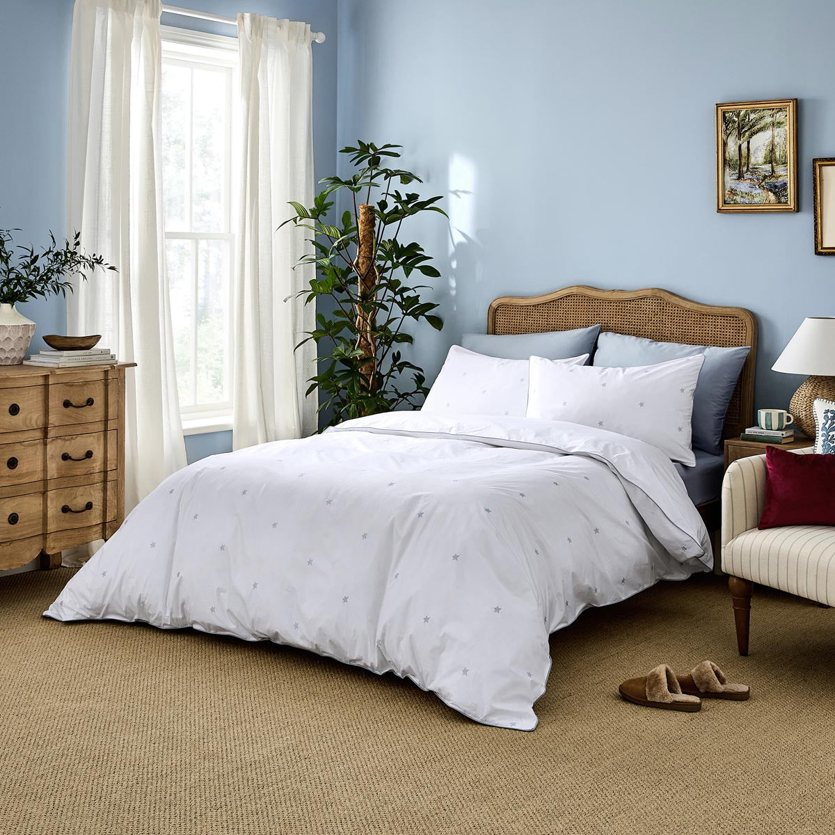 Sleep amongst the stars with this classic yet contemporary bedding set, made from crisp organic Fairtrade cotton and embroidered with stars. Designed to last.