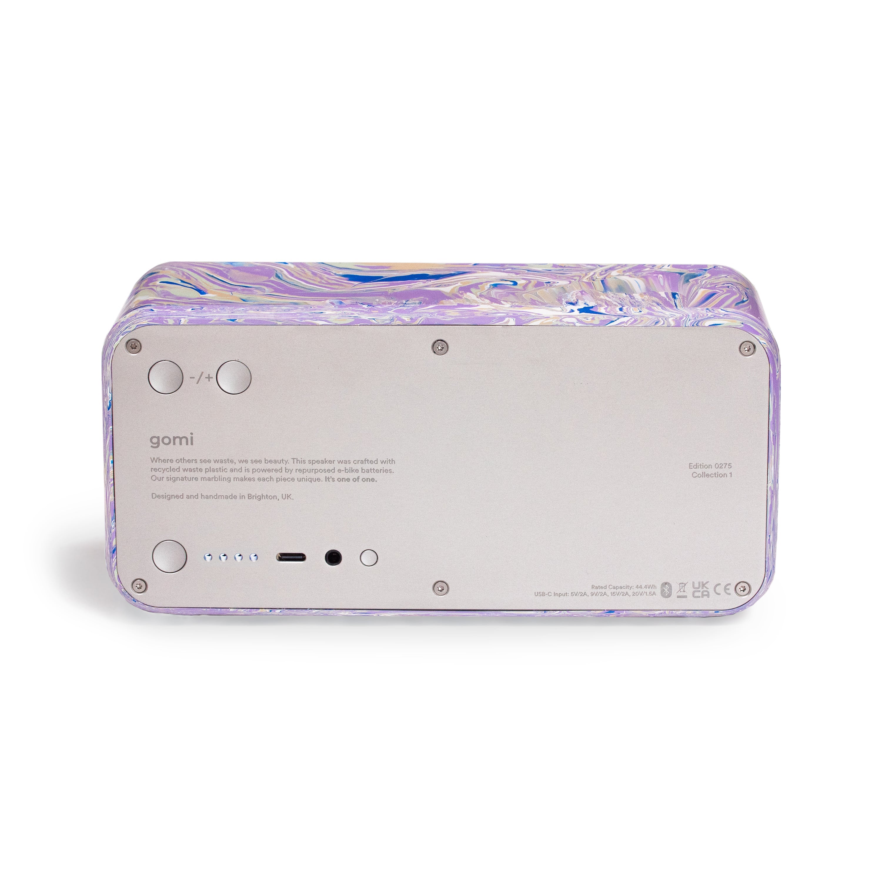 The stunning gomi speaker is uniquely designed from recycled plastic bags, with an incredible lifetime of repairs. Bluetooth & AUX compatible, they're handmade in Brighton with 32 hours of battery life to boot.