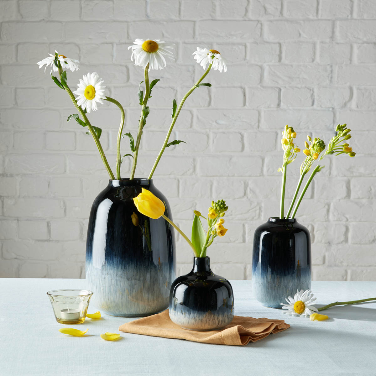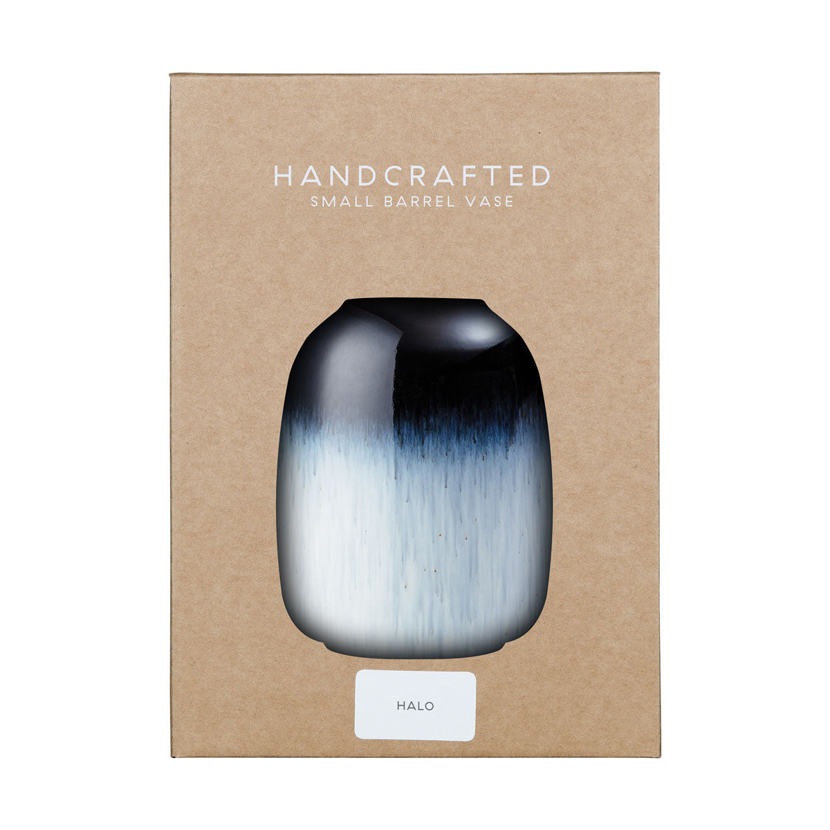 Chosen for its enduring quality, the Denby Halo Small Barrel Vase is crafted from robust Derbyshire stoneware with a unique, hand-applied reactive glaze. Timeless elegance meets durability.