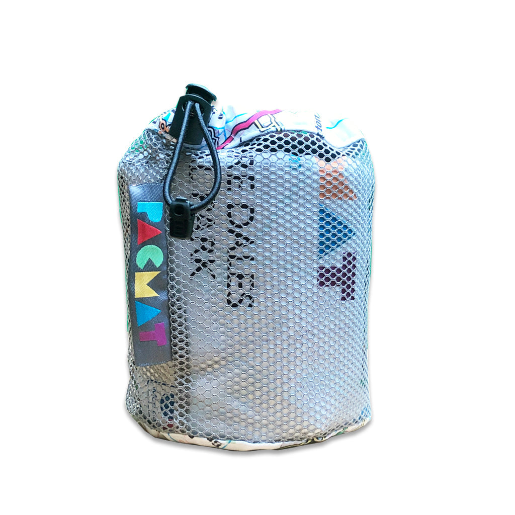 This PACMAT is crafted from robust materials, including a waterproof ripstop nylon base made from 100% recycled content, which prevents dampness. The large, soft polyester surface is quick-drying. Unlike many inferior blankets, which may tear or allow moisture through, this PACMAT offers enduring resilience.
