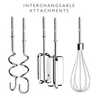 - Included in the box: Flat beaters, dough hooks and balloon whisk