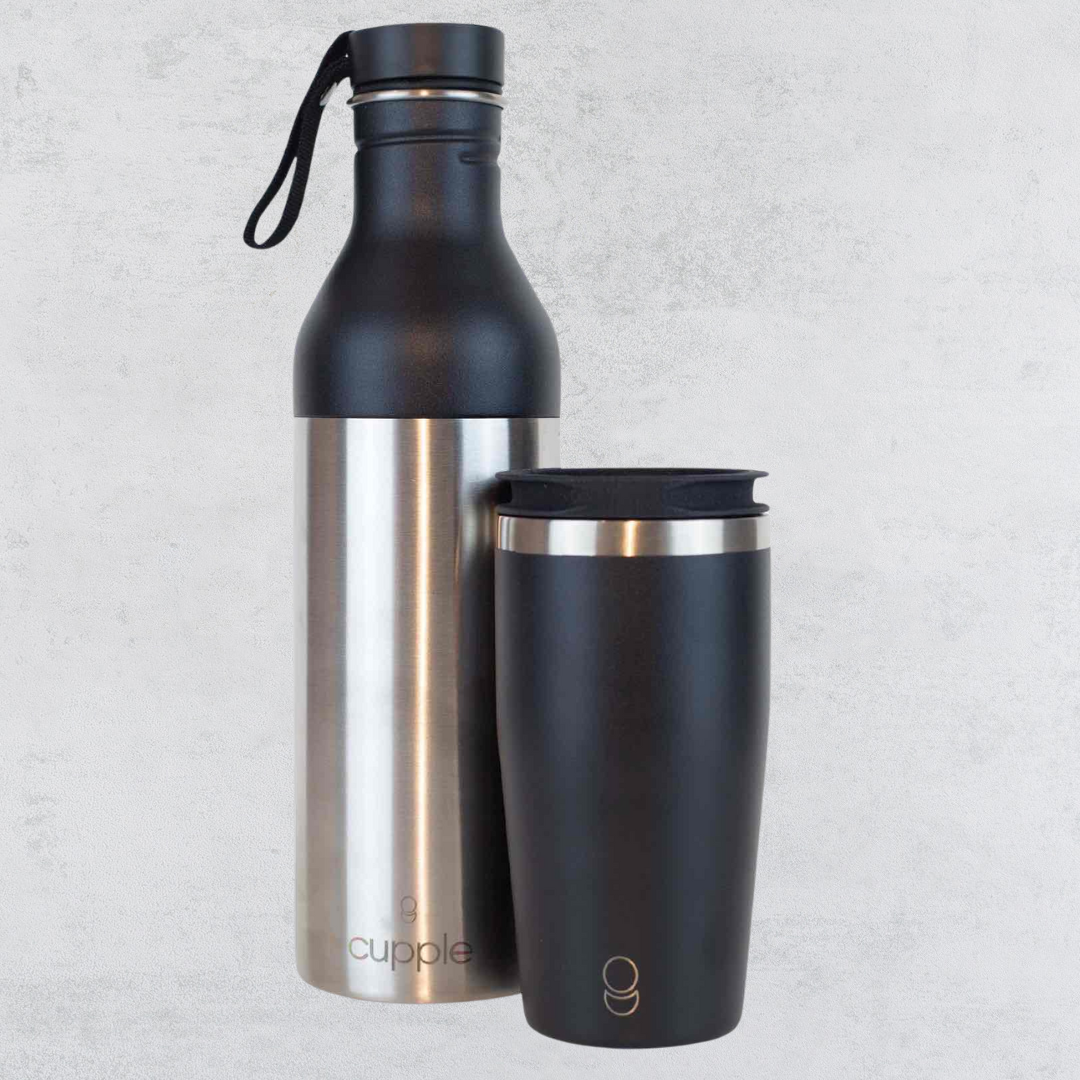 The Cupple is a twist-together water bottle and lidded cup in one. Stay hydrated on the go, and never forget your reusable cup again. To see how this cleverly simple design works, watch our video.