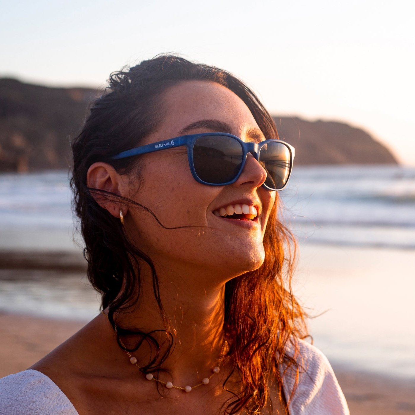 Made from recycled trawl nets recovered from the ocean, and paired with polarised glass or bio-plastic lenses, these super-tough navy blue sunglasses are built for adventure.