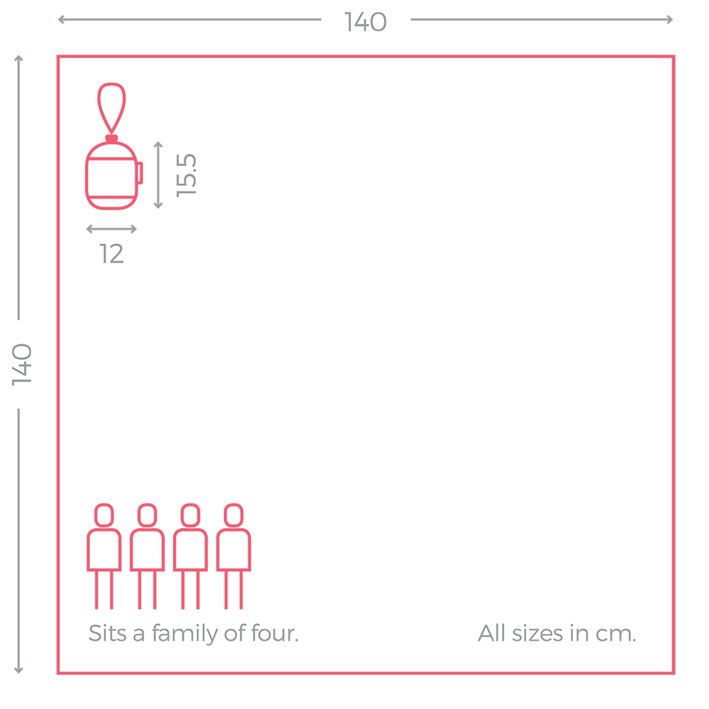 The perfect size for four adults - or two with lots of food. Lightweight, comfortable and washable, this picnic blanket is so compact, you won't think twice about popping it in your bag.