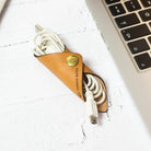 This pair of leather cable tidies prevents knots and helps cables last longer. A simple, sturdy solution for keeping your charging cables and earphones neat.