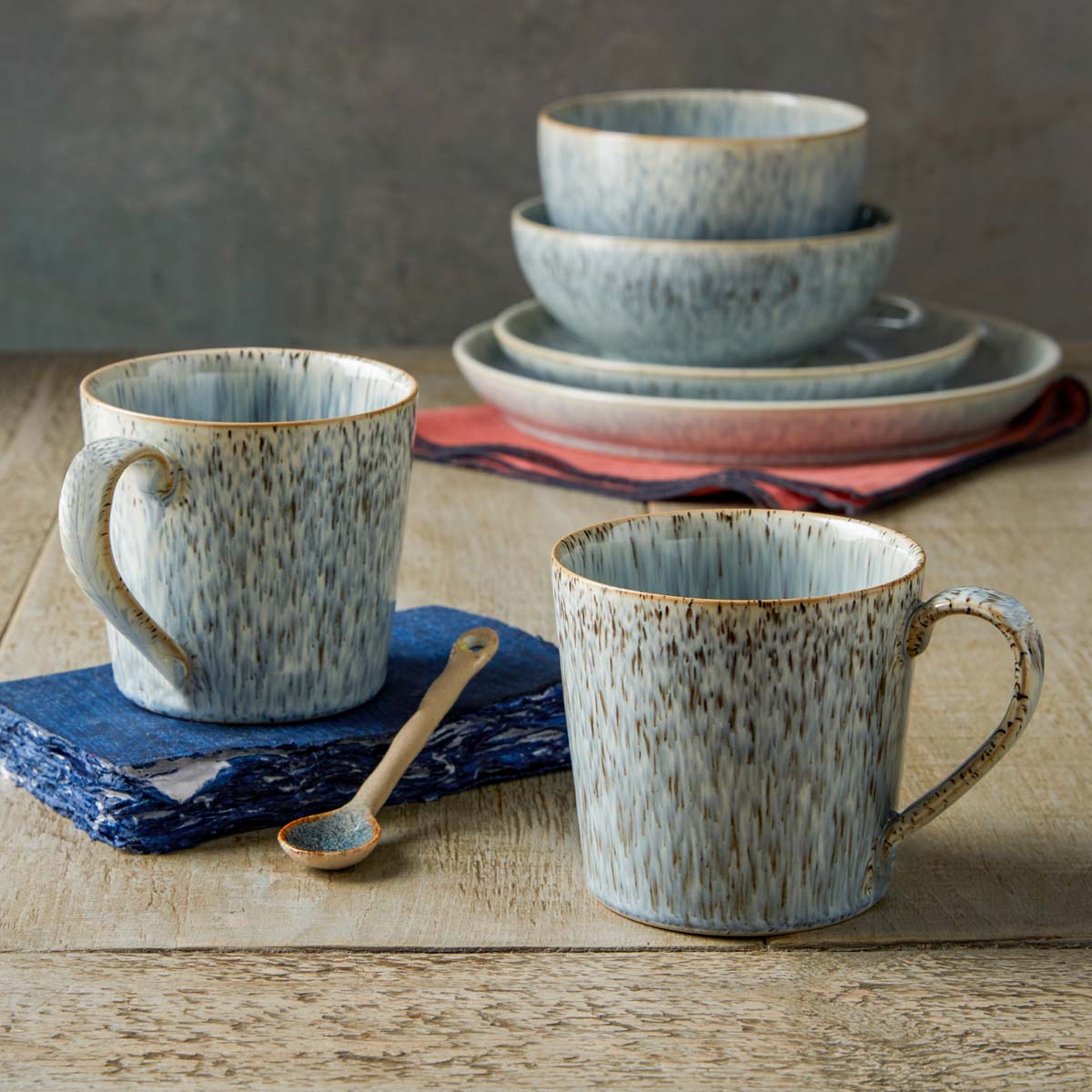 Constructed from high-quality, chip-resistant stoneware, these mugs are built to withstand everyday use. Unlike lower-quality mugs that crack or fail, Denby’s robust materials and hand-applied reactive glaze ensure sustained beauty and functionality over years.
