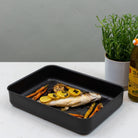 Cook up your Sunday roast in this incredibly tough anodised aluminium tray. It’s safe for use with metal utensils, and will never flake, rust or buckle.