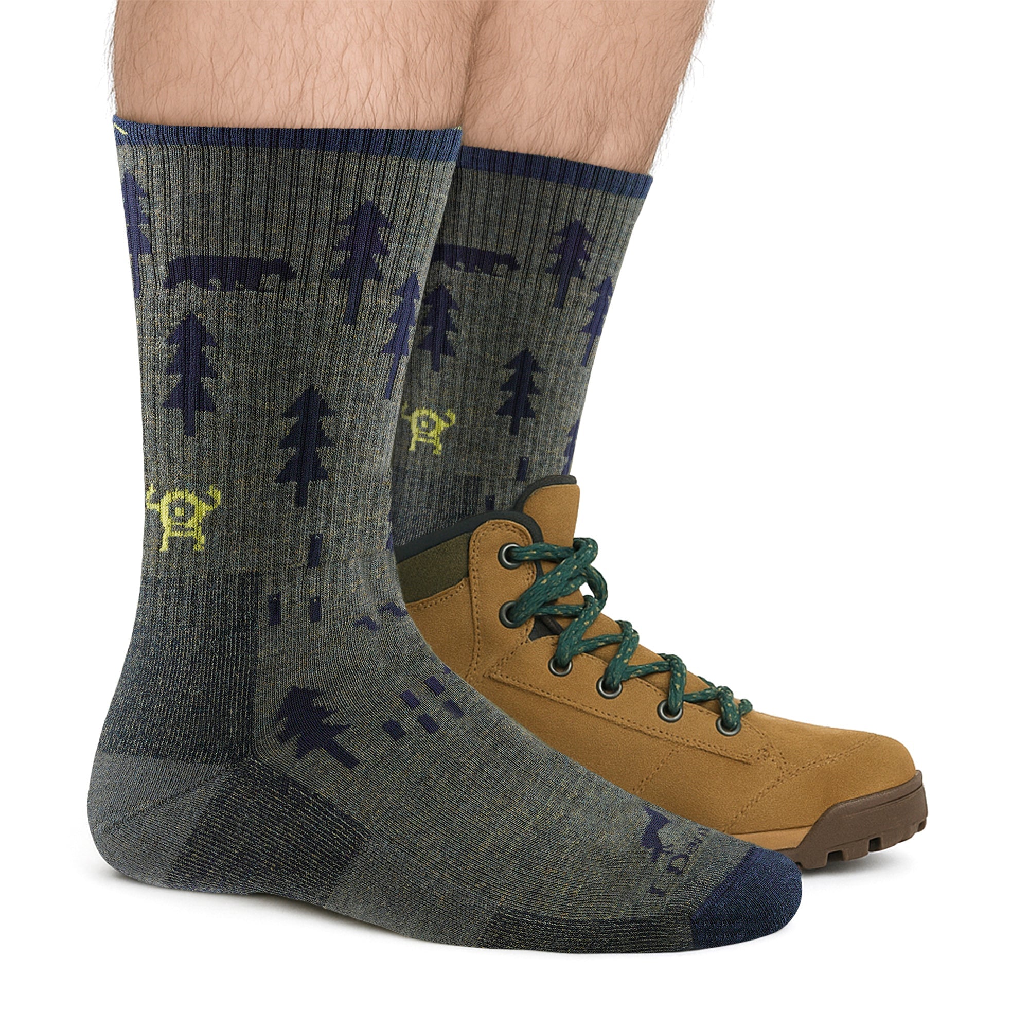 Mens Forest Patterned Boot Midweight Merino Wool Hiking Socks by Sock Snob
